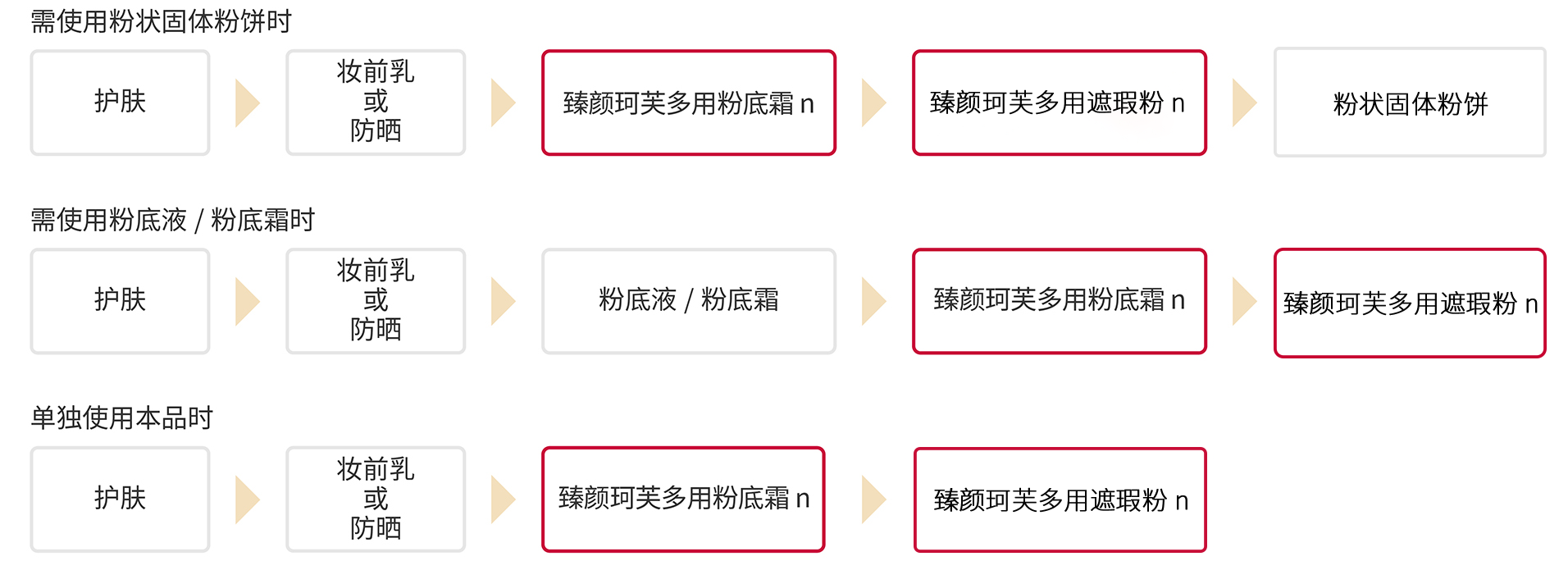 * 根据您的喜好及皮肤状态选择是否叠加使用臻颜珂芙多用遮瑕粉 n。